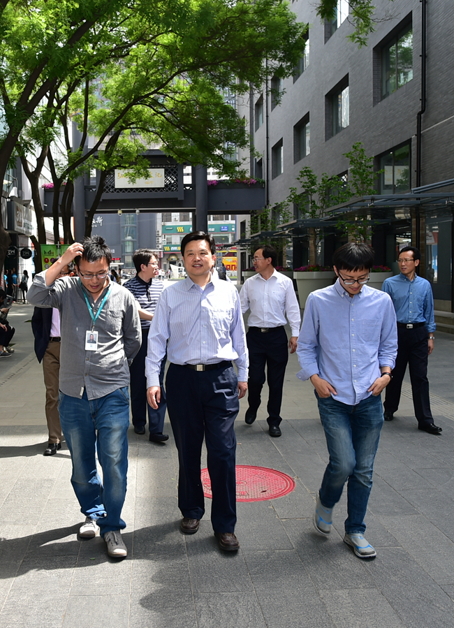 5月5日下午,“五四”青年节刚过,乔建永校长、赵纪宁副校长、曲昭伟副书记一行来到中关村创业大街,实地考察了由我校青年校友创办的3W咖啡和36氪等创业服务机构,看望了3W咖啡、拉勾网创始人马德龙和36氪创始人兼CEO刘成城两位青年创业校友,并与校友亲切座谈。校长助理、党政办公室主任辛玲玲、学生处处长王建坤、校友总会常务副秘书长蔺志青、信息与通信工程学院院长张琳、校团委书记任雄飞等陪同看望。