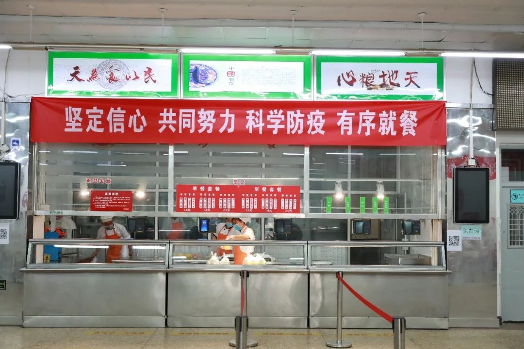 7、在学生食堂门口,学生按要求进行手部清洁,并接受体温监测后,有序进入学生食堂排队,按照“单人单座、同向就餐”原则有序就餐。