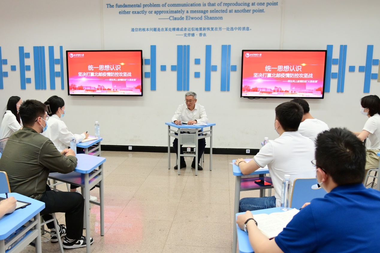 这堂生动的思政课也让师生们更真切地感受到来自学校的关心关爱,更坚定了打赢这场疫情防控攻坚战的信心,更激发了青年学子奋发成才、报效祖国的责任感和使命感。“作为一名北邮人,要时刻牢记使命感和责任感,团结一心、众志成城,共同打赢新冠疫情防控这场硬仗”计算机学院(国家示范性软件学院)2018级本科生刘新元表示。人工智能学院2021级硕士王焕雯说到,“课上,大家的发言让我感受到青年一代是有责任感的一代,大家众志成城,必能打赢疫情防控阻击战。” 现代邮政学院(自动化学院)2018级本科生石宇轩表示,“勠力同心者胜,风雨同舟者兴。作为新时代北邮青年我们更应该积极贯彻落实学校各项工作部署、冲锋在前,为打赢疫情防控阻击战贡献力量。”经济管理学院2018级本科生张紫琪说,“作为新时代的青年大学生,我们更应以身为则,细微做起,展示新时代有责任,敢奉献,有担当的新青年风貌。”数字媒体与设计艺术学院2021级研究生郭哿欣说,“在思政课中,吴书记关切地询问大家在昨天应急状态下的用餐情况,我再次被学校给予的温暖深深触动和鼓舞。更坚定了我作为学生党员和北邮青年的担当信念,在北邮速度和北邮温度的守护中,和衷共济的我们必将攻坚而胜!”
