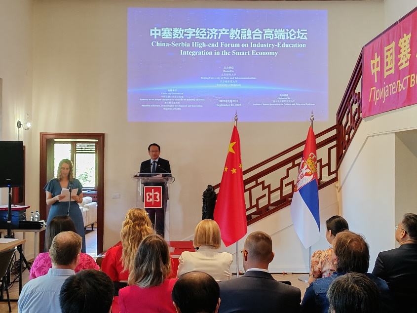 徐坤出席中塞数字经济产教融合高端论坛并致辞,中塞政府、高校、研究机构及行业企业代表受邀出席会议。会上,北京邮电大学数智教育平台国际版正式发布,徐坤代表学校向塞尔维亚教育部赠送了有关成果,并与克拉古耶瓦茨大学技术科学学院、贝尔格莱德“一带一路”研究院、塞中文化教育交流协会分别签署了合作协议。与会人员一致认为,论坛的成功举办,为促进数字经济时代下的教育创新与发展提供了新平台新机遇,愿进一步围绕数字经济、教育数字化、数字治理等领域对话合作,为深化两国“铁杆友谊”作出新的贡献。