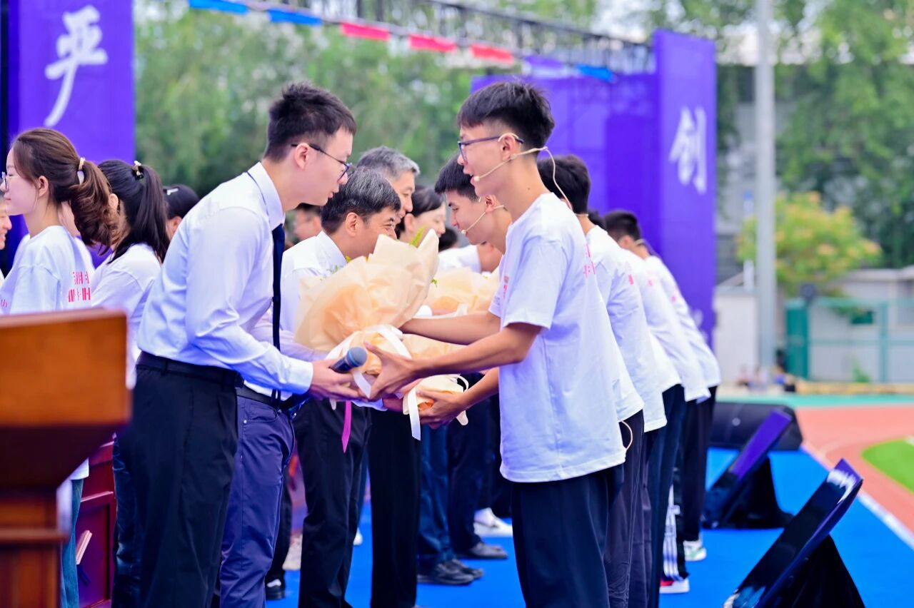 新生班主任、辅导员和教师代表向全体2025级新生送上真挚的入学寄语。今天适逢第41个教师节,新生代表向老师们献花,并表达祝福与感恩之情。