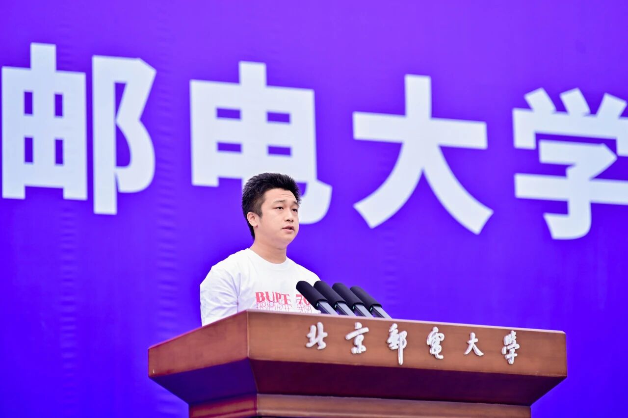 在校生代表、人工智能学院2022级本科生吕炫霖分享了他参与纪念抗战胜利80周年大会广场合唱的经历,号召全体新生做全面发展、挺膺担当的北邮人。