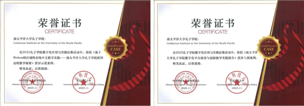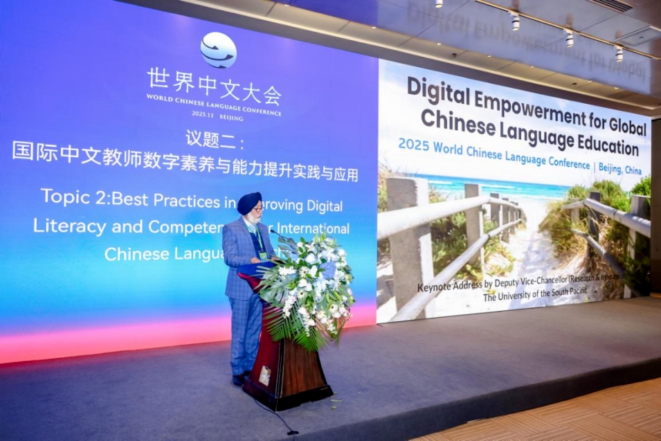 大会平行会议期间,与我校共建南太平洋大学孔子学院、伦敦玛丽女王大学孔子学院的有关学校代表受邀参加会议。南太平洋大学副校长古尔米特·辛格在“国际中文教师数字素养与能力提升”平行会议上作了题为《Digital Empowerment for Global Chinese Language Education》的报告。南太平洋大学孔子学院《基于Webex的区域性在线中文教学实践--南太平洋大学孔子学院跨国远程教学探索》《南太平洋大学孔子学院数字化平台建设与创新教学实践报告》荣获“数智化应用与实践”优秀案例。