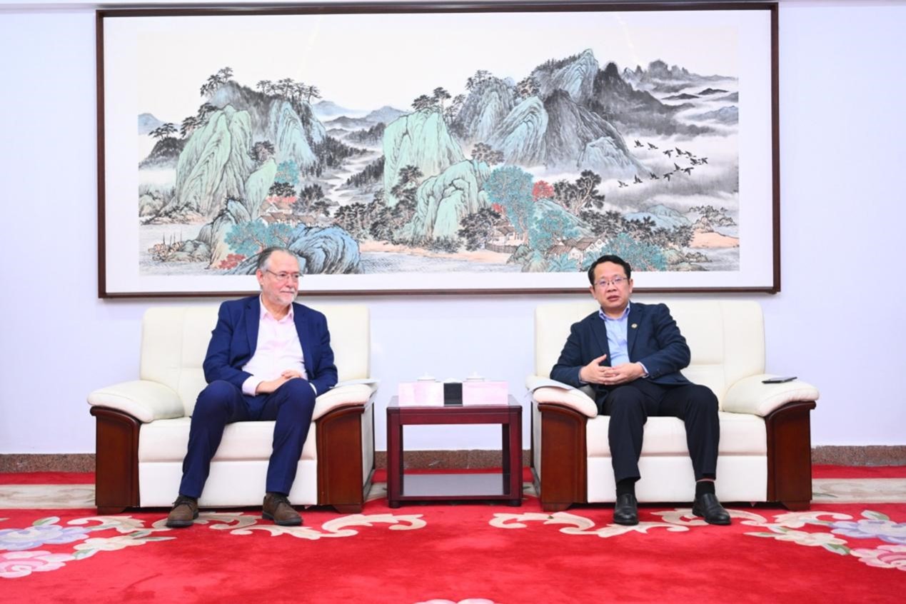 徐坤对鲁珀特·韦格里夫的到访表示欢迎。他表示,北邮近年来高度重视技术创新与教育创新融合发展,在智能技术赋能教育变革方面取得丰硕成果,剑桥大学未来数字教育中心在数智教育研究方面具有深厚实力,为深化双方交流与合作提供了坚实支撑。希望双方持续加强数智教育理论研究与实践创新,携手为推动中英教育合作和全球教育数智化变革作出积极贡献。