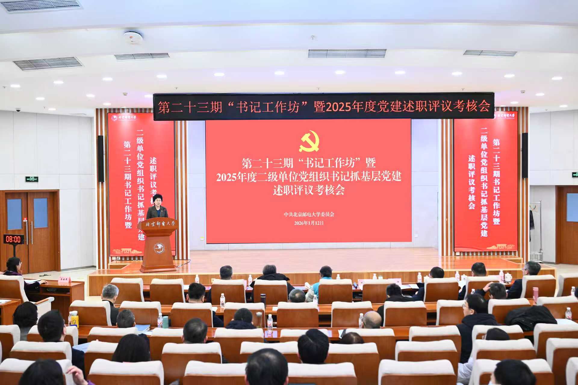 2026年1月12日,北京邮电大学召开2025年度二级单位党组织书记抓基层党建工作述职评议会暨第二十三期书记工作坊,教育部党建工作联络员林志华到会指导,校党委书记续梅主持并讲话,校领导班子成员出席会议。